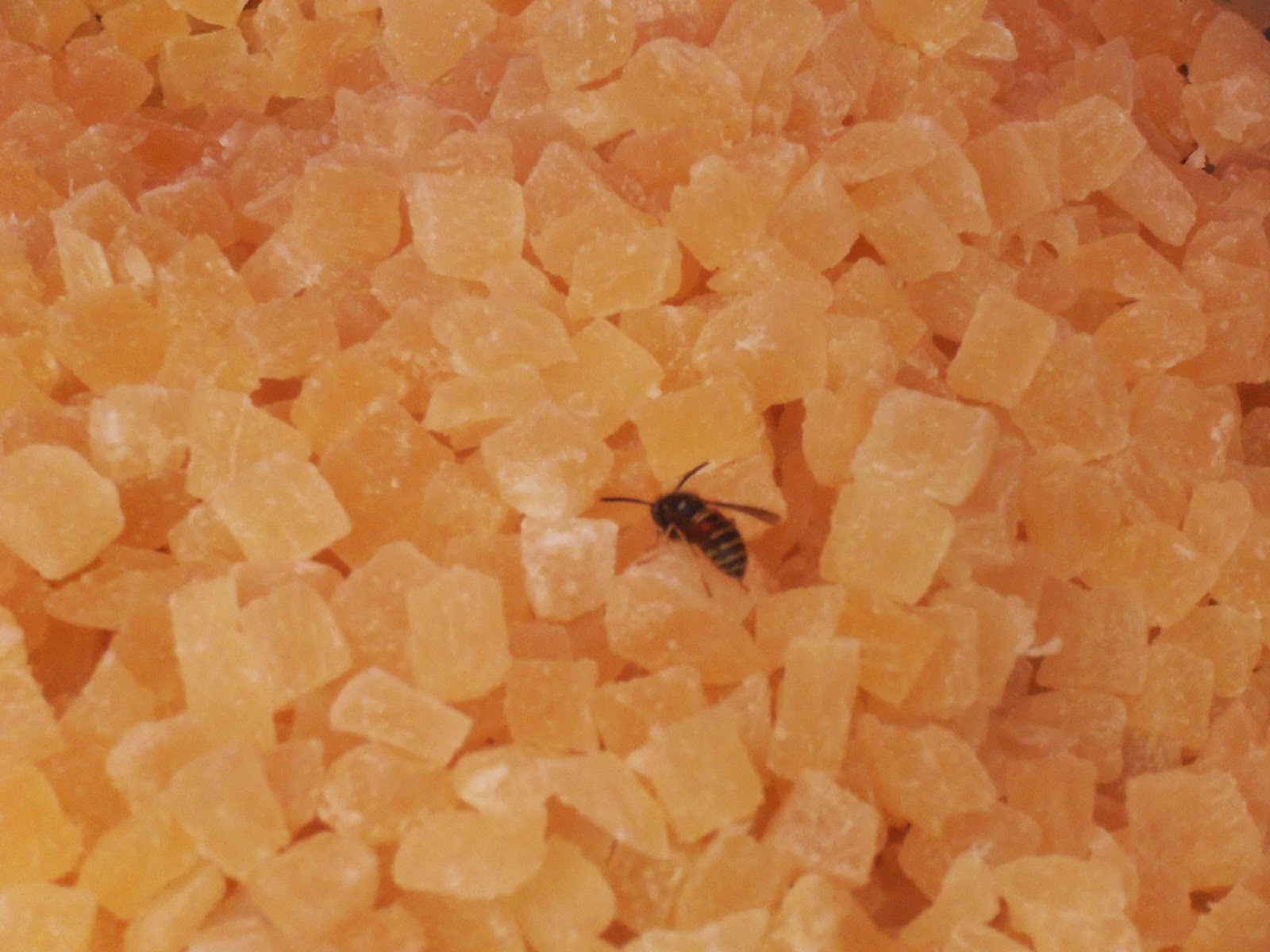 Markkina-alue oli täynnä ampiaisia. Niitä oli eirtyisen paljon baklava-kojulla sekä englantilaisissa hilloissa ja marmelaedissa sekä italialaisssa kekseissä. Mutta yhtään ainoaa ampiaista ei ollut The British Fudge Companyn tuotteissa! Liekö jotain tekemistä raaka-aineilla.